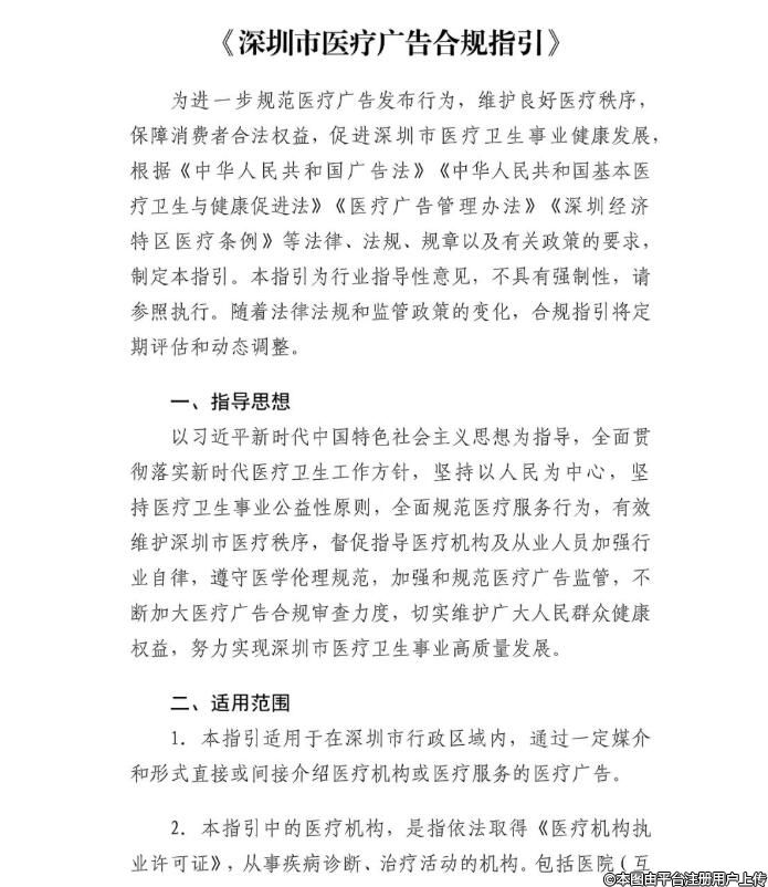 現(xiàn)將《深圳市醫(yī)療廣告合規(guī)指引》文件附上,請各有關(guān)單位及廣告主、廣告經(jīng)營者、廣告發(fā)布者、廣告代言人組織開展學(xué)習(xí)培訓(xùn),推進廣告合規(guī)指引的落實,健全廣告發(fā)布審查機制,維護消費者合法權(quán)益,服務(wù)深圳經(jīng)濟社會高質(zhì)量發(fā)展、服務(wù)粵港澳大灣區(qū)和中國特色社會主義先行示范區(qū)建設(shè)。