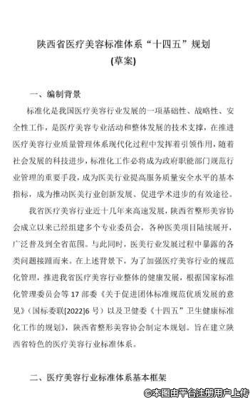 陜西省醫(yī)療美容標(biāo)準(zhǔn)體系“十四五”規(guī)劃(草案)