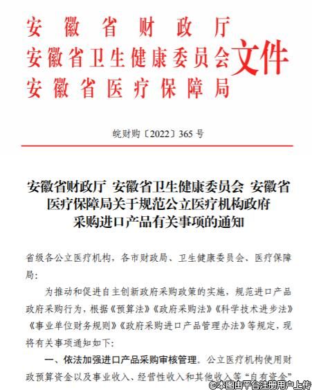 此次安徽是動(dòng)真格了,直接提前法出通知,明確提出,公立醫(yī)療機(jī)構(gòu)使用財(cái)政預(yù)算資金以及事業(yè)收入、經(jīng)營(yíng)性收入和其他收入等“自有資金”開展采購(gòu)活動(dòng),應(yīng)當(dāng)嚴(yán)格執(zhí)行政府采購(gòu)關(guān)于進(jìn)口審核的有關(guān)規(guī)定。單項(xiàng)或批量采購(gòu)預(yù)算達(dá)到政府采購(gòu)分散采購(gòu)限額標(biāo)準(zhǔn),確需采購(gòu)進(jìn)口產(chǎn)品的,實(shí)行審核管理。