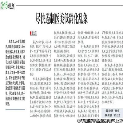 中國消費(fèi)者報:盡快遏制醫(yī)美低齡化亂象