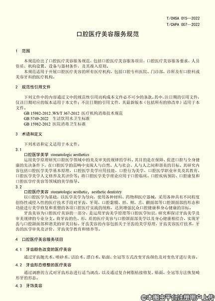 《口腔醫(yī)療美容服務(wù)規(guī)范》團(tuán)體標(biāo)準(zhǔn)自2022年9月1日起正式實施