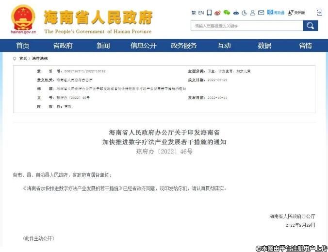 海南省出臺(tái)21條措施推進(jìn)數(shù)字療法產(chǎn)業(yè)發(fā)展