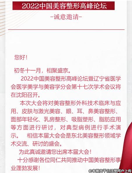 2022中國美容整開高峰論壇暨遼寧省醫(yī)學會醫(yī)學美學與美容學分會第十七次學術(shù)會議邀請函