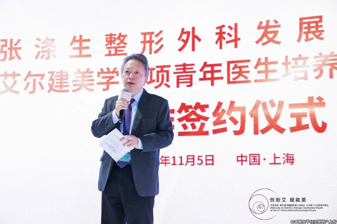 2022年11月5日,在上海舉行的第五屆中國國際進(jìn)口博覽會(huì)(以下簡稱“進(jìn)博會(huì)”)上,張滌生整形外科發(fā)展基金會(huì)(以下簡稱“張滌生基金會(huì)”)與全球醫(yī)美生物制藥領(lǐng)導(dǎo)企業(yè)艾爾建美學(xué)舉行合作簽約儀式。根據(jù)協(xié)議,雙方將繼續(xù)開展“艾爾建專項(xiàng)青年醫(yī)生培訓(xùn)基金”合作,連續(xù)第七年舉辦整形美容行業(yè)青年醫(yī)生公益培訓(xùn)項(xiàng)目。張滌生基金會(huì)理事長、上海交通大學(xué)醫(yī)學(xué)院附屬第九人民醫(yī)院副院長李青峰教授,張滌生基金會(huì)秘書長、上海交通大學(xué)醫(yī)學(xué)院附屬第九人民醫(yī)院整復(fù)外科李圣利教授,張滌生基金會(huì)副秘書長、上海交通大學(xué)醫(yī)學(xué)院附屬第九人民醫(yī)院整復(fù)外科羅旭松教授,艾爾建美學(xué)中國總經(jīng)理丘漢華、艾爾建美學(xué)中國醫(yī)學(xué)教育執(zhí)行總監(jiān)孔令剛等嘉賓出席簽約儀式。