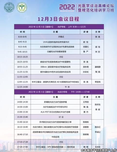 為了交流與傳授皮膚科光醫(yī)學診治領域最新臨床技術、治療理念,推動光醫(yī)學診治技術持續(xù)發(fā)展,中國醫(yī)學科學院皮膚病醫(yī)院(中國醫(yī)學科學院皮膚病研究所)將于2022年12月3日-4日舉辦“2022年光醫(yī)學診治高峰論壇暨規(guī)范化培訓學習班”,項目編號J15-22-05(國)。本次培訓班面向全國從事皮膚科工作的醫(yī)、技、護等各級臨床醫(yī)務人員及研究生,歡迎大家積極參加。