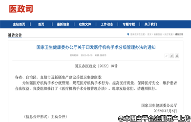 第五條國(guó)家衛(wèi)生健康委負(fù)責(zé)全國(guó)醫(yī)療機(jī)構(gòu)手術(shù)分級(jí)管理工作的監(jiān)督管理。
