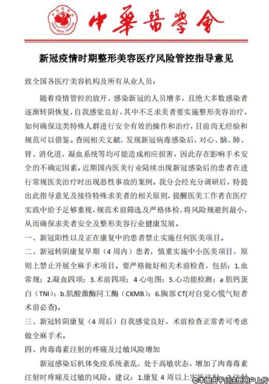 附近:《新冠疫情時期整形美容醫(yī)療風險管控指導(dǎo)意見》