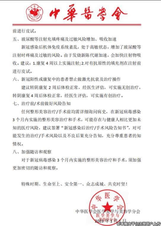 隨著新冠肺炎疫情管控的放開,后續(xù)將不可避免地對新冠病毒感染者實施醫(yī)療整形美容的治療和操作,為確保醫(yī)療整形美容診療安全,中華醫(yī)學(xué)會印發(fā)了《關(guān)于新冠疫情時期整形美容醫(yī)療風險管控指導(dǎo)意見》?,F(xiàn)轉(zhuǎn)發(fā)給大家,望各有關(guān)醫(yī)療美容機構(gòu)及從業(yè)人員嚴格按照指導(dǎo)意見的相關(guān)要求執(zhí)行,在診療中加以重視,務(wù)必盡到告知義務(wù),簽訂知情同意書,規(guī)范術(shù)前篩選及嚴格體檢,最大程度規(guī)避診療風險,確保求美就醫(yī)者的安全及醫(yī)療整形美容行業(yè)的健康發(fā)展。