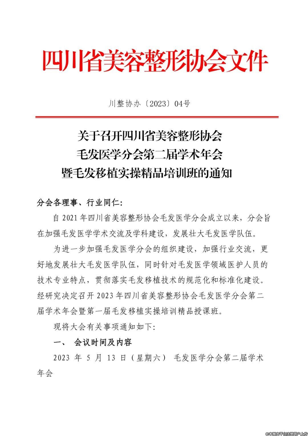 會(huì)議通知 四川省美容整形協(xié)會(huì)毛發(fā)醫(yī)學(xué)分會(huì)第二屆學(xué)術(shù)年會(huì)暨毛發(fā)移植實(shí)操精品培訓(xùn)班
