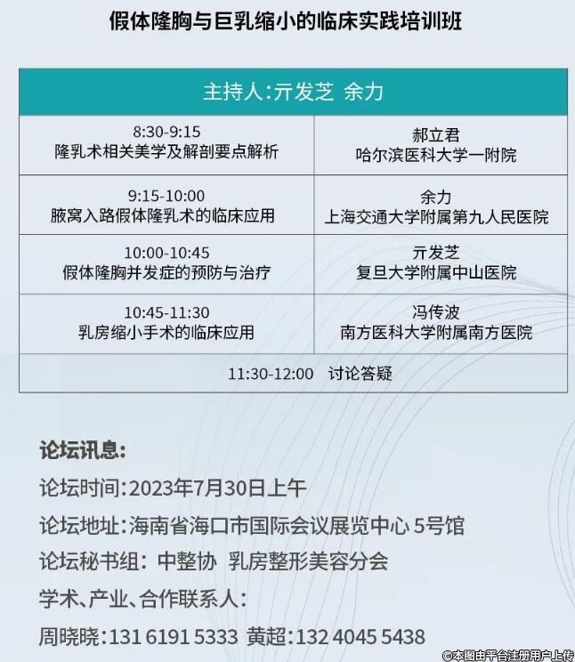 乳房假體隆胸與巨乳縮小培訓班由中整協(xié)乳房整形美容分會承辦,邀請國內(nèi)頂級臨床一線專家,從臨床實際出發(fā),注重細節(jié),結(jié)合臨床實際問題,以期提高乳房整形從業(yè)人員的臨床診治水平。