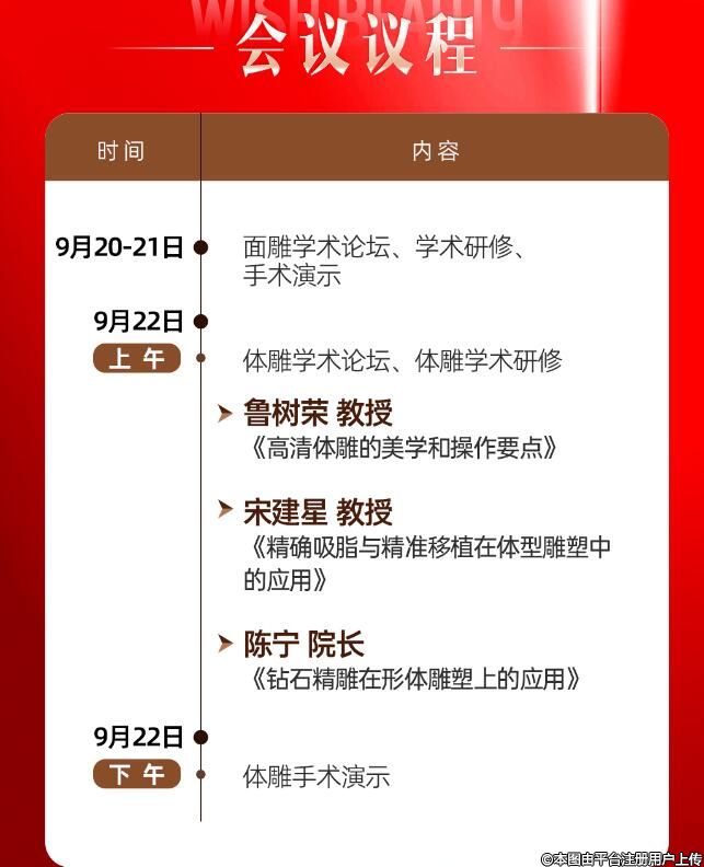 9月20日-21日,會(huì)議將舉辦面雕學(xué)術(shù)論壇。期間,與會(huì)專(zhuān)家將就面雕塑美進(jìn)行課題分享與手術(shù)演示。