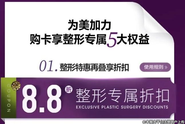 四川華美紫馨整形黃金周 88元美力卡