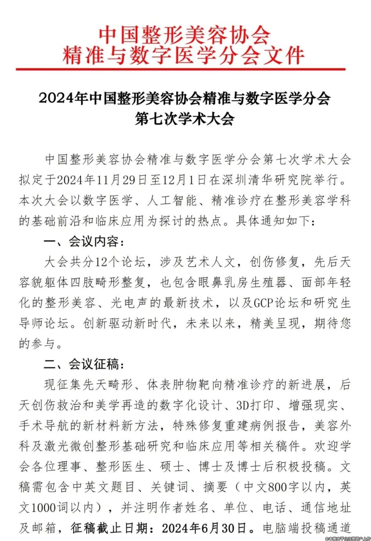 第一輪通知 2024年中國(guó)整形美容協(xié)會(huì)精準(zhǔn)與數(shù)字醫(yī)學(xué)分會(huì)第七次學(xué)術(shù)大會(huì)