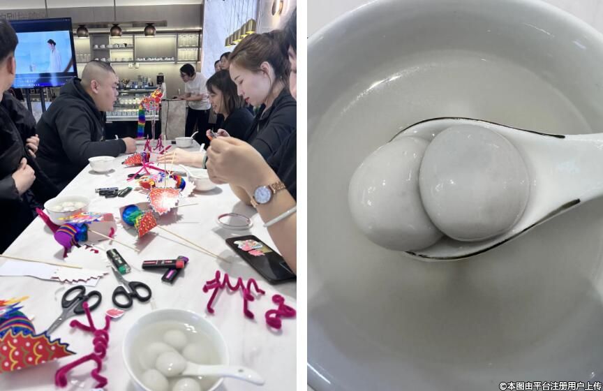 古人稱元宵為“浮圓子”,也有人稱之為“元寶”。南方的元宵與北方的湯圓在做法上略有不同,但外觀相似,因其圓滾滾的外形,元宵時(shí)常被寄予“團(tuán)圓”的美好寓意。活動(dòng)現(xiàn)場(chǎng)邀請(qǐng)“麗寶”們煮湯圓、品元宵,工作人員把象征團(tuán)圓吉祥的湯圓送到大家手中,也讓大家更深刻體會(huì)到中國(guó)傳統(tǒng)節(jié)日的氛圍和內(nèi)涵。