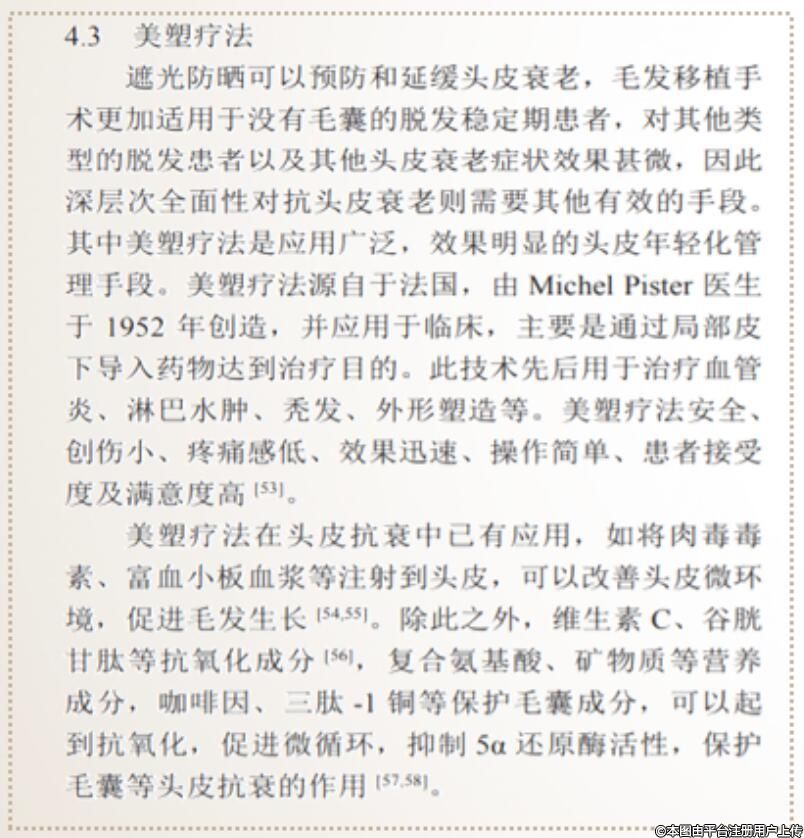 《中國頭皮抗衰專家共識》中明確表示,在對抗頭皮衰老的幾種手段中,美塑療法是應(yīng)用廣泛,效果明顯的頭皮年輕化管理手段。