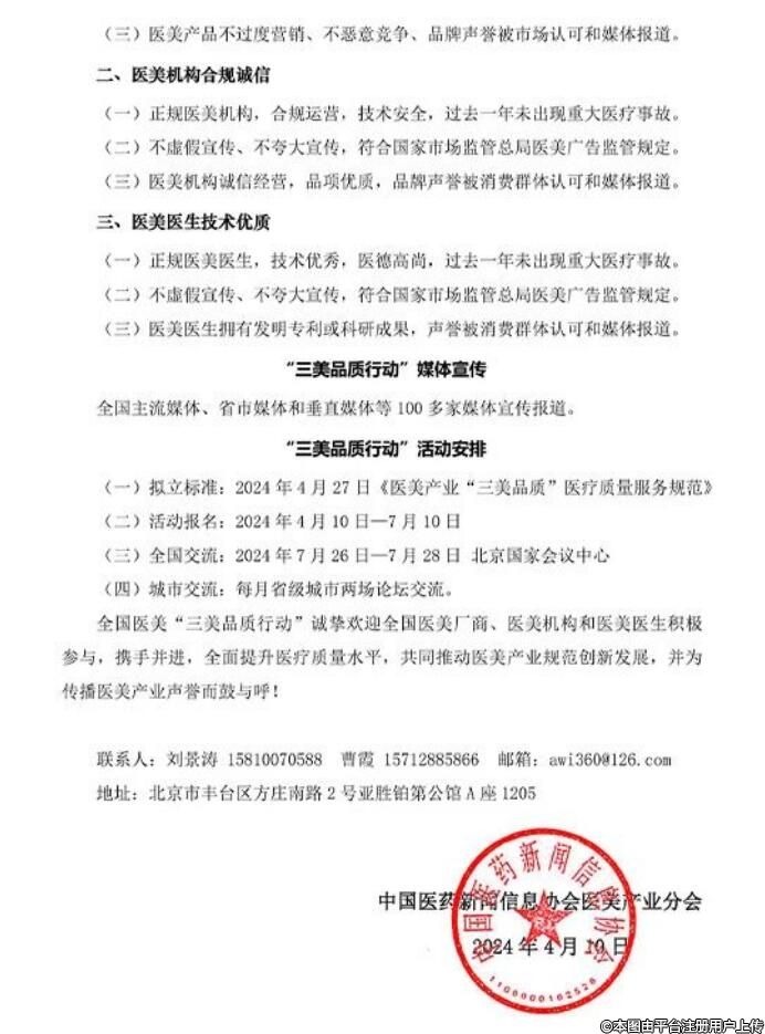 歡迎全國醫(yī)美廠商、醫(yī)美機構(gòu)和醫(yī)美醫(yī)生積極參與,攜手并進(jìn),全面提升醫(yī)療質(zhì)量水平,共同推動醫(yī)美產(chǎn)業(yè)規(guī)范創(chuàng)新發(fā)展,并為傳播醫(yī)美產(chǎn)業(yè)聲譽而鼓與呼。