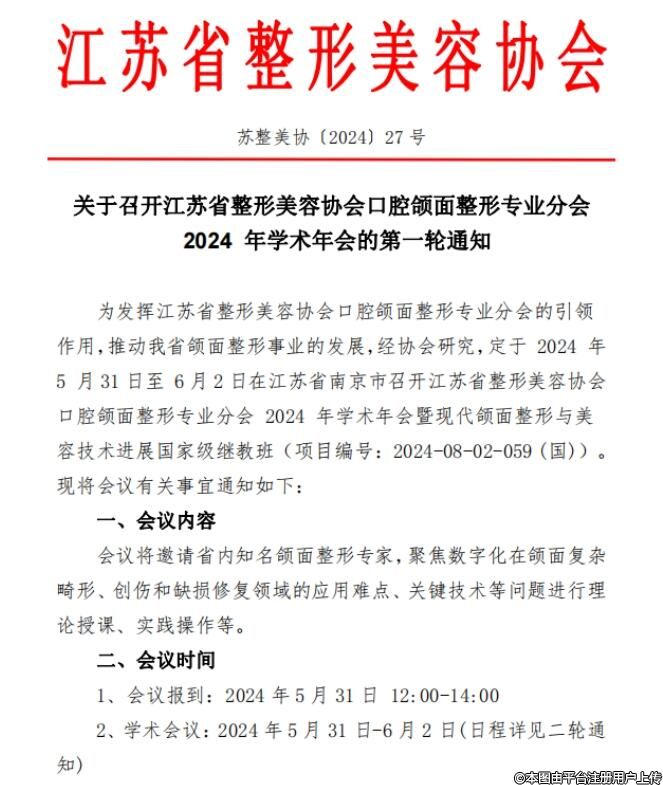 關(guān)于召開江蘇省整形美容協(xié)會口腔頜面整形專業(yè)分會2024年學(xué)術(shù)年會的第一輪通知