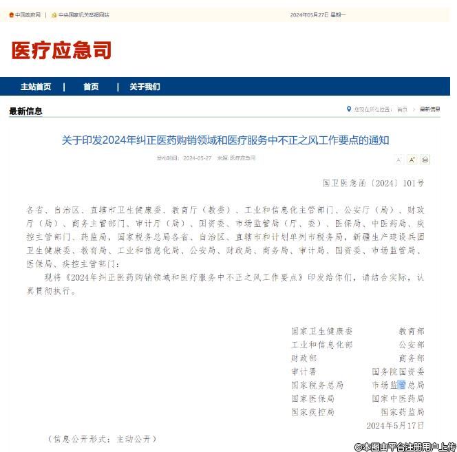 關(guān)于印發(fā)2024年糾正醫(yī)藥購(gòu)銷領(lǐng)域和醫(yī)療服務(wù)中不正之風(fēng)工作要點(diǎn)的通知