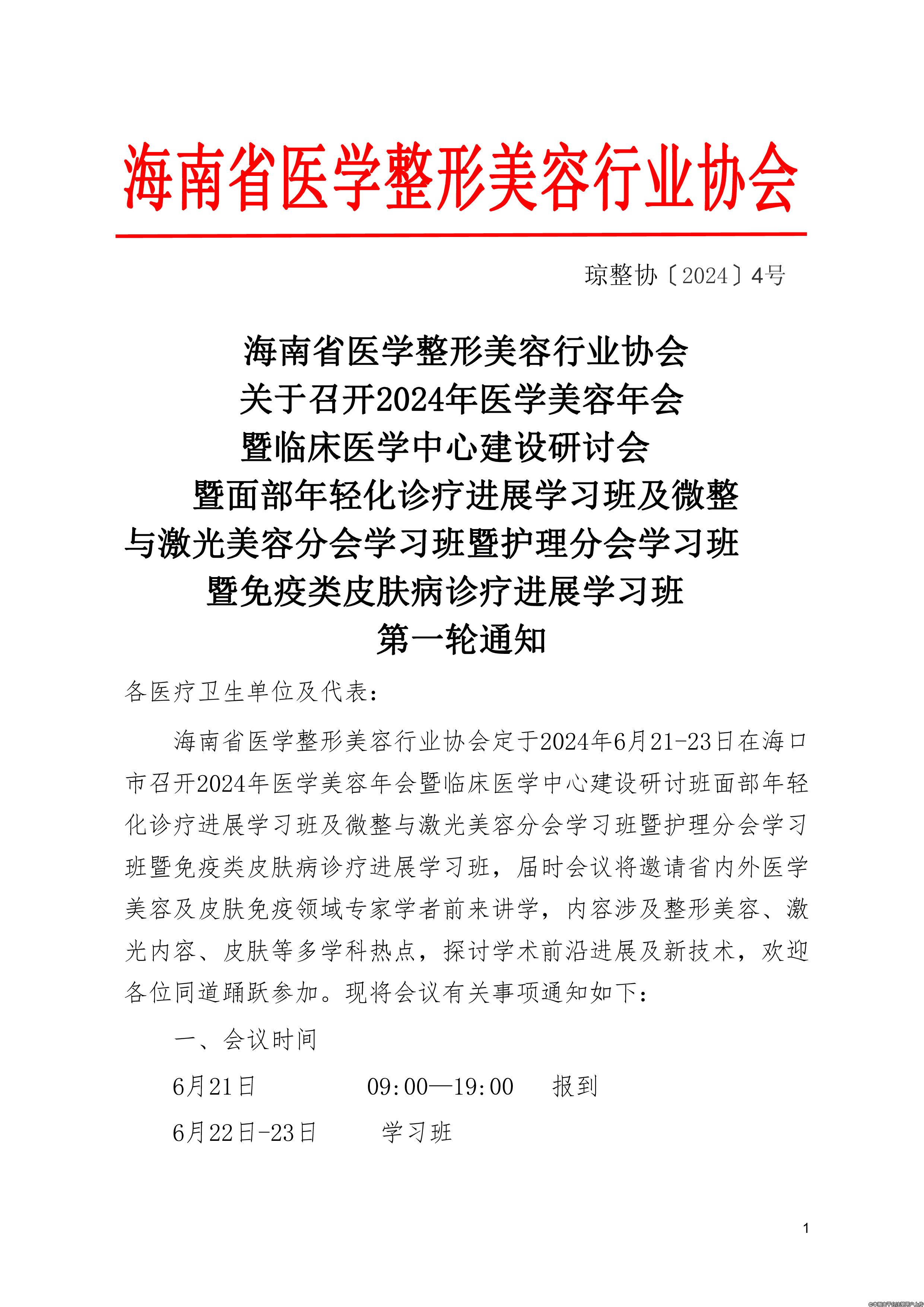 關(guān)于召開2024年醫(yī)學(xué)美容年會(huì)