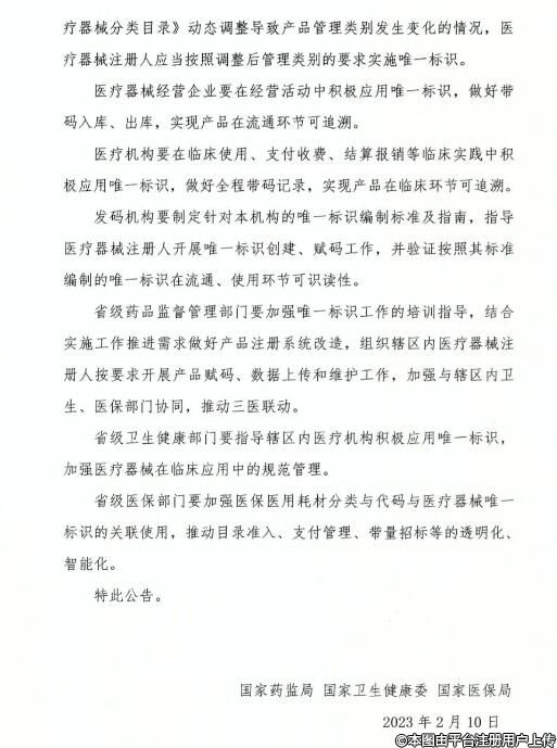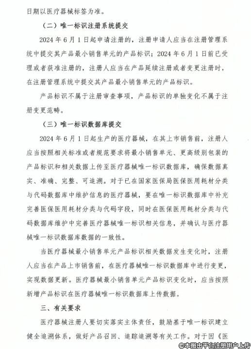 關(guān)于做好第三批實施醫(yī)療器械唯一標(biāo)識工作的公告