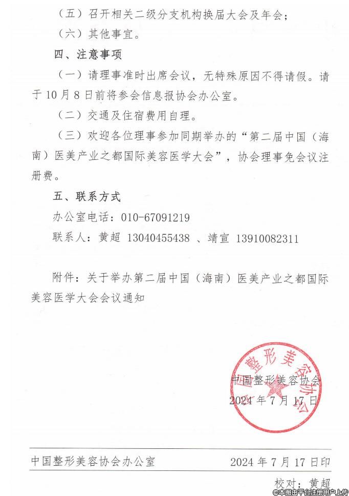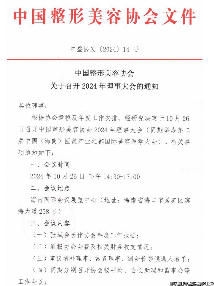 中國整形美容協(xié)會關(guān)于召開 2024 年理事大會的通知