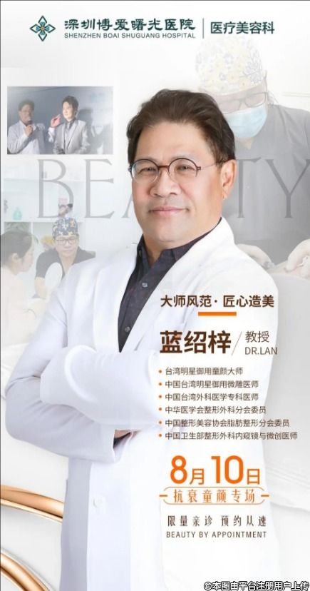 8月10日,臺灣明星御用童顏大師藍(lán)紹梓教授將在深圳博愛曙光醫(yī)院親診,小仙女們不用遠(yuǎn)赴韓國、臺灣,在家門口就能享受“明星同款”do臉方案。