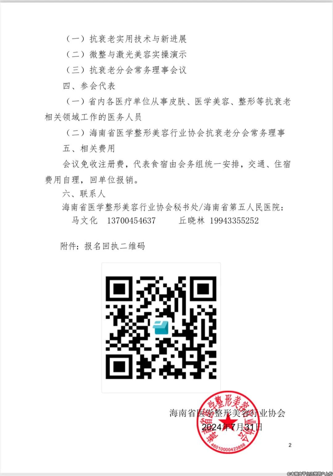 2024年海南省醫(yī)學(xué)整形美容行業(yè)協(xié)會(huì)抗衰老分會(huì)技術(shù)進(jìn)展培訓(xùn)班課程安排