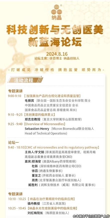 《科技創(chuàng)新和無創(chuàng)醫(yī)美新藍?!穼n}論壇是藥融圈和納晶聯(lián)合策劃的CMC-China的主題論壇之一,將在8月16號全天在B館中央舞臺舉行。