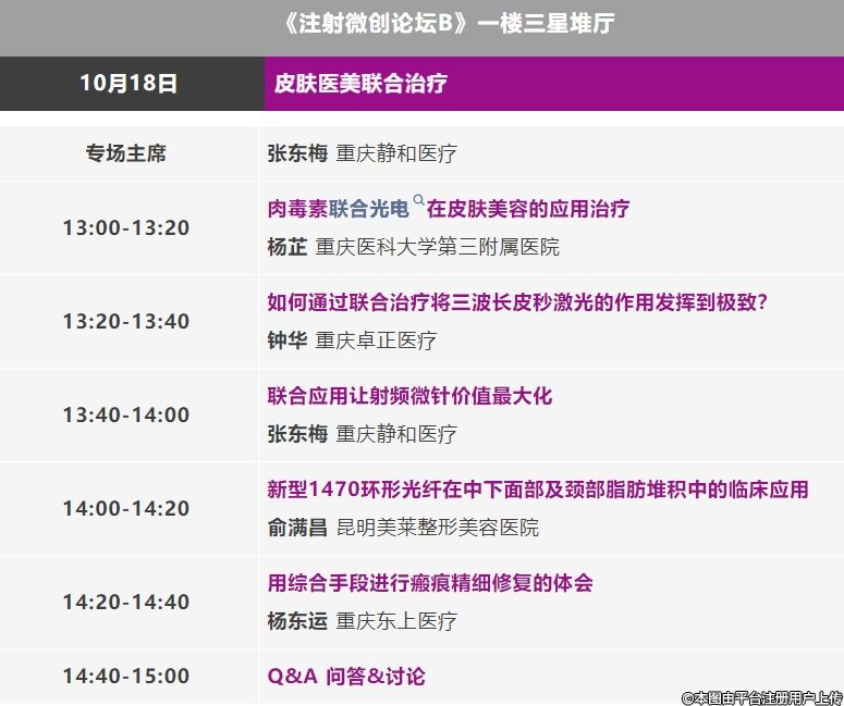 在這樣的大背景下,AMWC大會(huì)聚焦于皮膚醫(yī)美聯(lián)合治療的最新進(jìn)展,特別設(shè)立了相關(guān)議題的會(huì)議,邀請(qǐng)了行業(yè)內(nèi)的權(quán)威專家,共同探討和分享最新的研究成果和臨床經(jīng)驗(yàn)。這不僅是一個(gè)學(xué)術(shù)交流的平臺(tái),更是一個(gè)洞察行業(yè)未來發(fā)展趨勢的窗口。