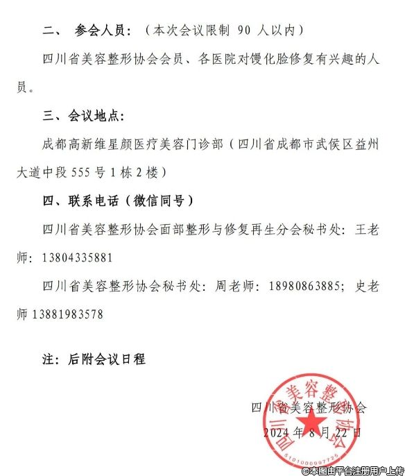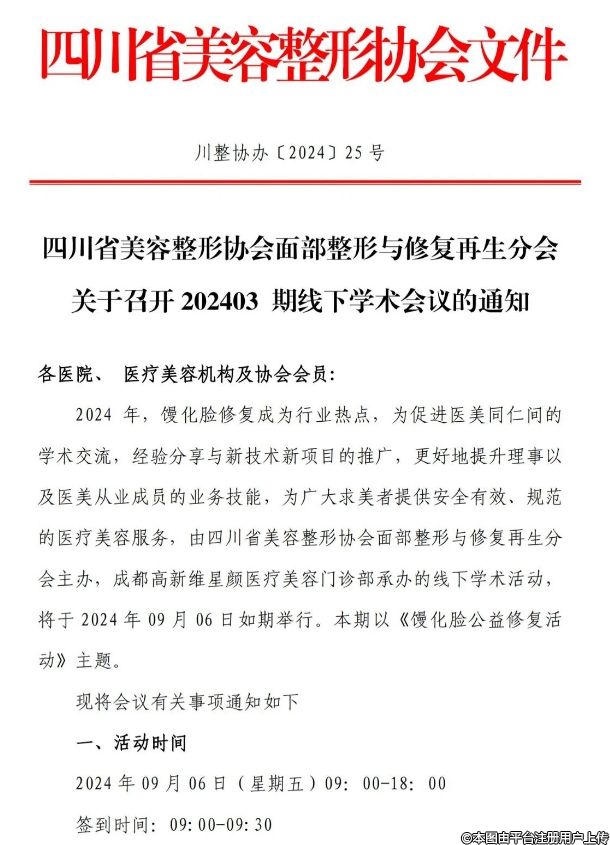 四川省美容整形協(xié)會面部整形與修復(fù)再生分會關(guān)于召開 202403期線下學(xué)術(shù)會議的通知
