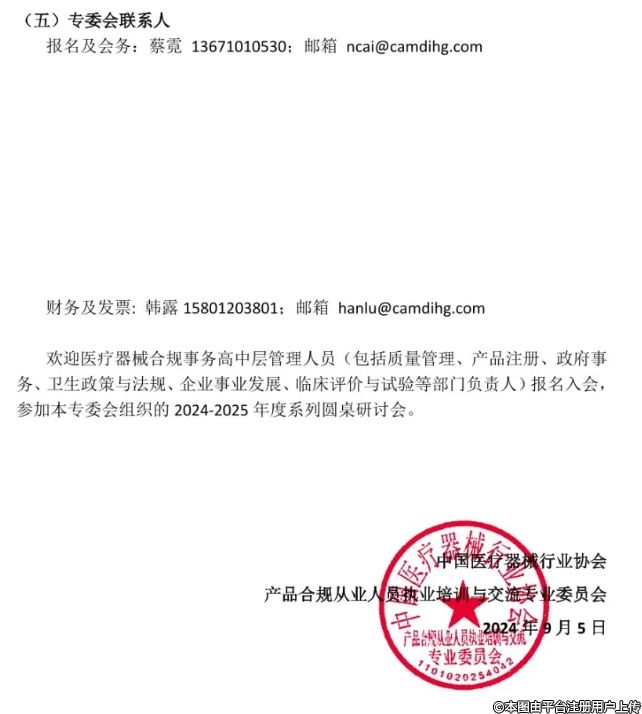 歡迎醫(yī)療器械合規(guī)事務(wù)高中層管理人員(包括質(zhì)量管理、產(chǎn)品注冊、政府事務(wù)、衛(wèi)生政策與法規(guī)、企業(yè)事業(yè)發(fā)展、臨床評價與試驗(yàn)等部門負(fù)責(zé)人)報名入會參加本專委會組織的 2024-2025 年度系列圓桌研討會。