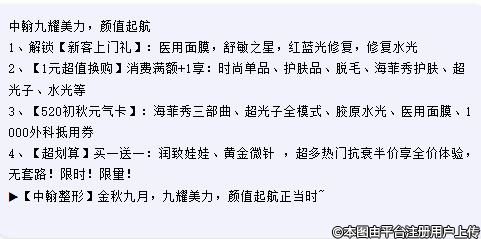 武漢中翰給大家送美容啦,解鎖新客上門(mén)禮,1元超值換購(gòu),520初秋元?dú)饪?,超劃算買(mǎi)一送一,這里的福利超級(jí)多,想要做美容整形的朋友,趕緊來(lái)吧!