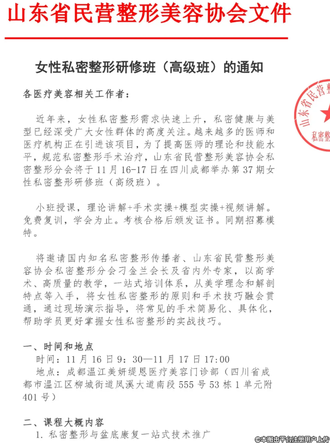 11月16-17日第37期女性私密整形研修班(高級班)的通知