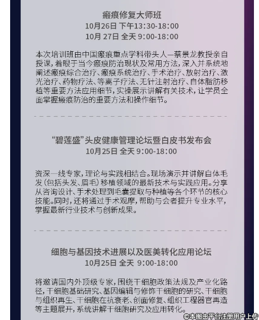 其中,中整協(xié)中醫(yī)美容分會將于10月25日舉辦中醫(yī)美容技術培訓班,立足中國傳統(tǒng)醫(yī)學,圍繞中醫(yī)美容、養(yǎng)生等相關內(nèi)容,分享中醫(yī)美容在針灸美容、經(jīng)脈調(diào)理、色素疾病、養(yǎng)生延衰等方面的傳統(tǒng)與創(chuàng)新技術。