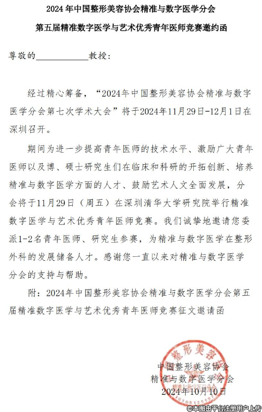 2024年中國整形美容協(xié)會(huì)精準(zhǔn)與數(shù)字醫(yī)學(xué)分會(huì)第五屆精準(zhǔn)數(shù)字醫(yī)學(xué)與藝術(shù)優(yōu)秀青年醫(yī)師競賽邀約函