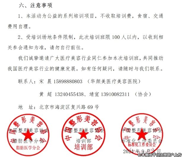 2、受培訓(xùn)場地條件限制,此次培訓(xùn)班限100人以內(nèi),以收到相關(guān)參會(huì)通知為準(zhǔn),請(qǐng)勿自行前往。我們誠摯邀請(qǐng)廣大醫(yī)療美容行業(yè)同仁參加本次培訓(xùn)班,共同推動(dòng)我國醫(yī)療美容行業(yè)的健康發(fā)展。如有任何疑問,請(qǐng)隨時(shí)與我們聯(lián)系。