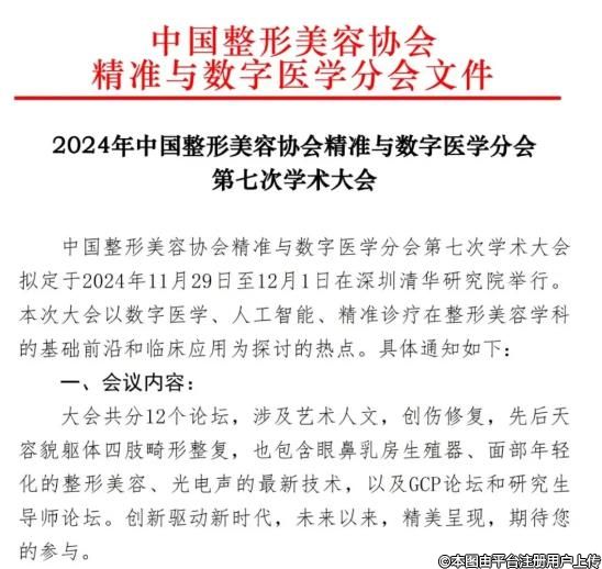 2024年中國(guó)整形美容協(xié)會(huì)精準(zhǔn)與數(shù)字醫(yī)學(xué)分會(huì)第七次學(xué)術(shù)大會(huì)即將開(kāi)幕