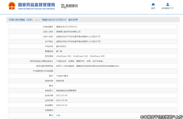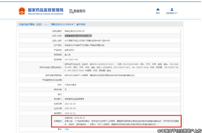 國家藥品監(jiān)督管理局調(diào)整湖南7家超聲治療儀適用范圍