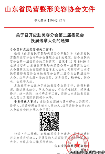 關(guān)于召開皮膚美容分會(huì)第二屆委員會(huì)換屆選舉大會(huì)的通知
