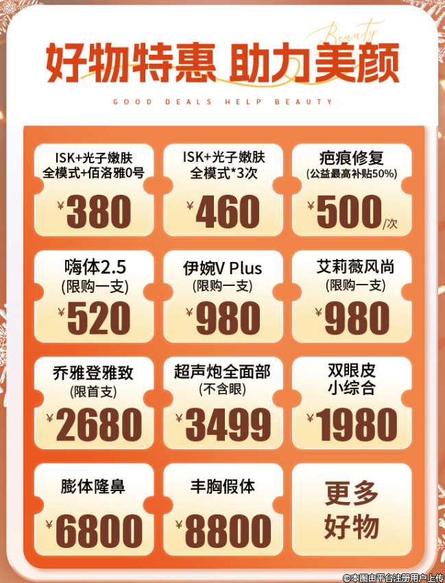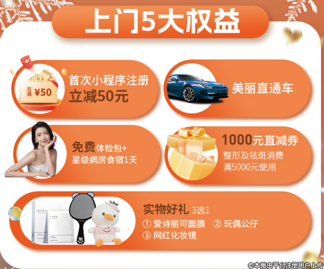③預(yù)約禮:網(wǎng)絡(luò)新客預(yù)約,整形祛斑項(xiàng)目立減1000元(滿 5000可用)