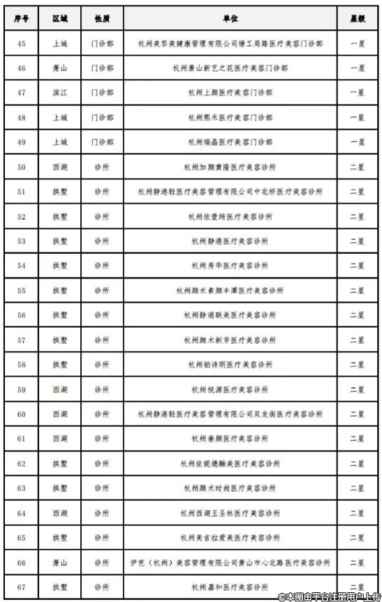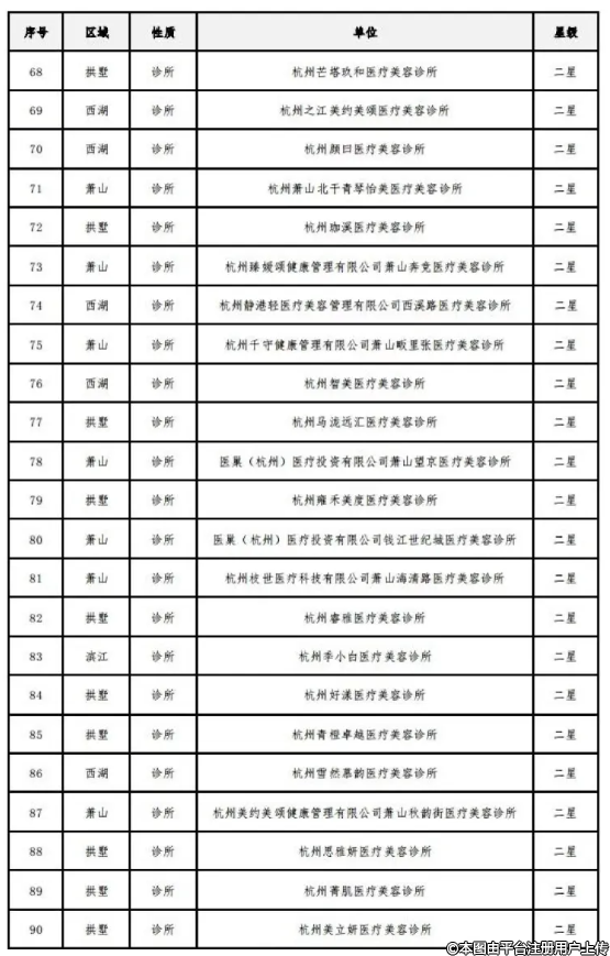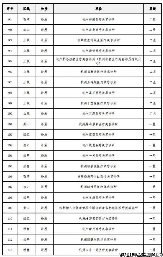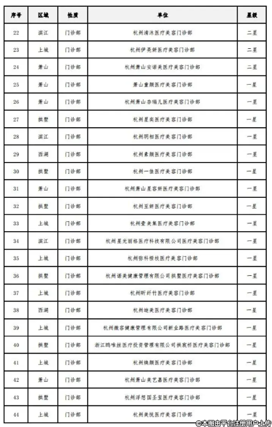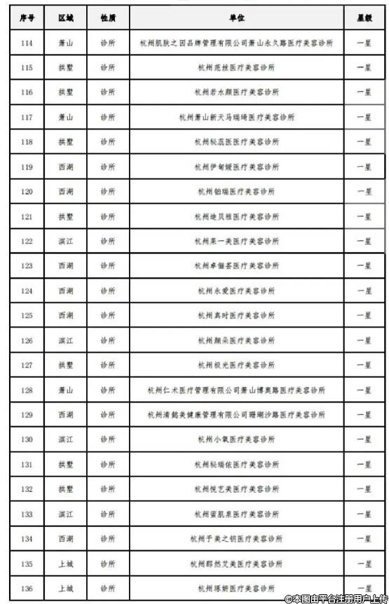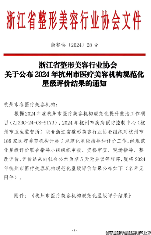關(guān)于公布2024年杭州市醫(yī)療美容機(jī)構(gòu)規(guī)范化星級(jí)評(píng)價(jià)結(jié)果的通知