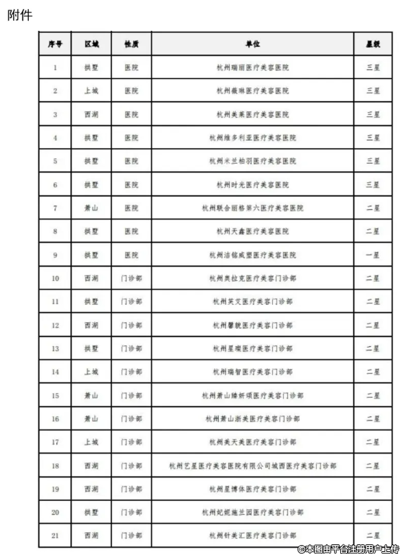 附件:《杭州市醫(yī)療美容機(jī)構(gòu)規(guī)范化星級(jí)評(píng)價(jià)結(jié)果》