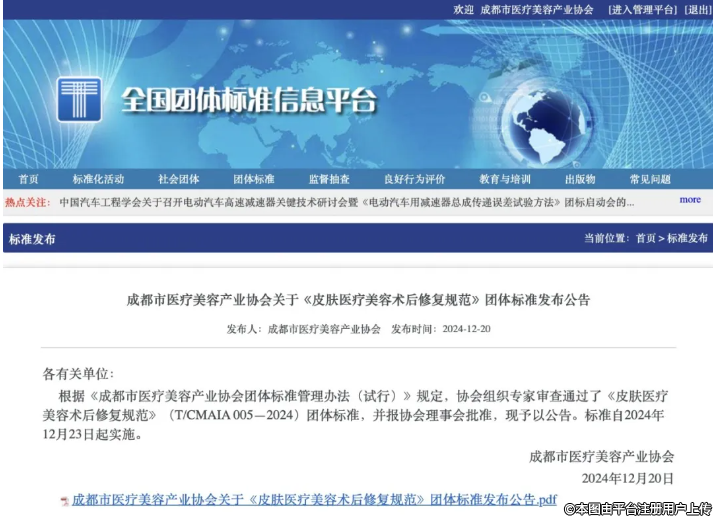 團體標準 | 《皮膚醫(yī)療美容術后修復規(guī)范》團體標準發(fā)布公告