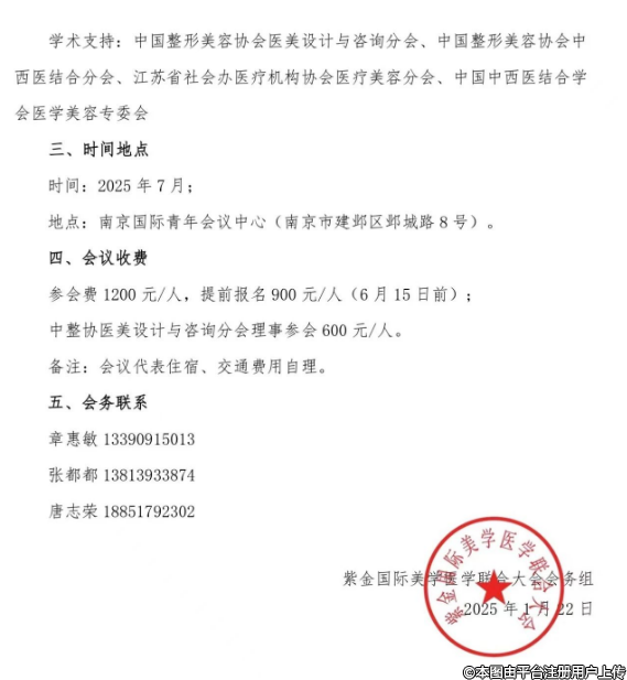 紫金國際美學醫(yī)學聯(lián)合大會會務組將聯(lián)合國內(nèi)外相關醫(yī)美學術組織與機構(gòu)于2025年7月,在南京國際青年會議中心舉辦“2025紫金國際美學醫(yī)學聯(lián)合大會&第十一屆中整協(xié)醫(yī)美設計與咨詢分會”,本次會議以大會報告、專題演講、圓桌會議、手術演示、大賽等方式,圍繞“美學醫(yī)生與整形藝術、輕醫(yī)美與皮膚管理、整合年輕化、私密美學整形、醫(yī)學美學設計與咨詢以及醫(yī)美營銷與運管”等主題進行學術交流與會議展覽活動,歡迎廣大醫(yī)美同仁積極參與?,F(xiàn)將大會有關事項通知如下: