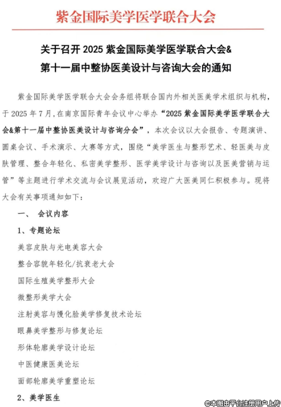 關于召開 2025 紫金國際美學醫(yī)學聯(lián)合大會&第十一屆中整協(xié)醫(yī)美設計與咨詢大會的通知