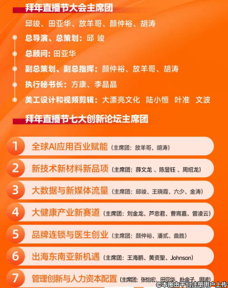 大會主席團總顧問為田亞華教授,主席團成員和分享嘉賓包括“邱竣、放羊哥、顏仲裕、胡濤”等百余位行業(yè)精英,美工設計和視頻剪輯為大漂亮文化傳媒陸小恒 葉準、文波,他們將憑借豐富經(jīng)驗和專業(yè)知識,引領大會順利進行。