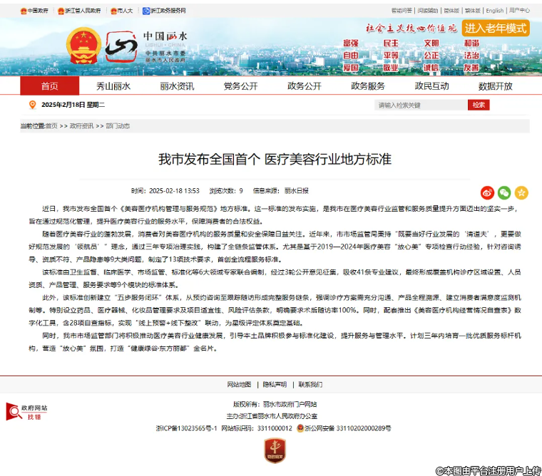 麗水發(fā)布全國首個醫(yī)美地方標(biāo)準(zhǔn),為全國醫(yī)美行業(yè)規(guī)范化建設(shè)提供"麗水樣板"