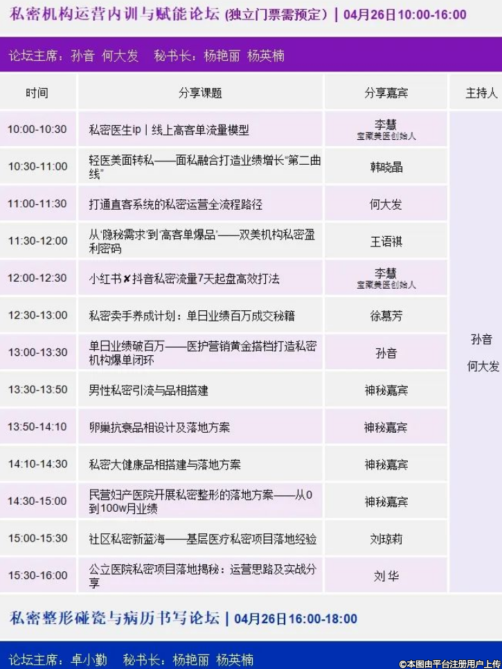大會設(shè)立10大板塊24個分論壇,以視頻講解和案例演示的形式展開。從私密整形技術(shù)、操作視頻、接診查體、咨詢運(yùn)營、最新獲客等方面開設(shè)系列私密整形論壇,為轉(zhuǎn)型私密生殖整形提供了系統(tǒng)化學(xué)習(xí)。大會匯集了權(quán)威私密整形專家、注射美容專家、激光美容專家展開變美與安全的研討。AI醫(yī)學(xué)辯論會,AI數(shù)字醫(yī)生大屏問診互動,AI自動獲客作為大會3大亮點(diǎn),引領(lǐng)與會人員抓住AI數(shù)字轉(zhuǎn)型先機(jī)。