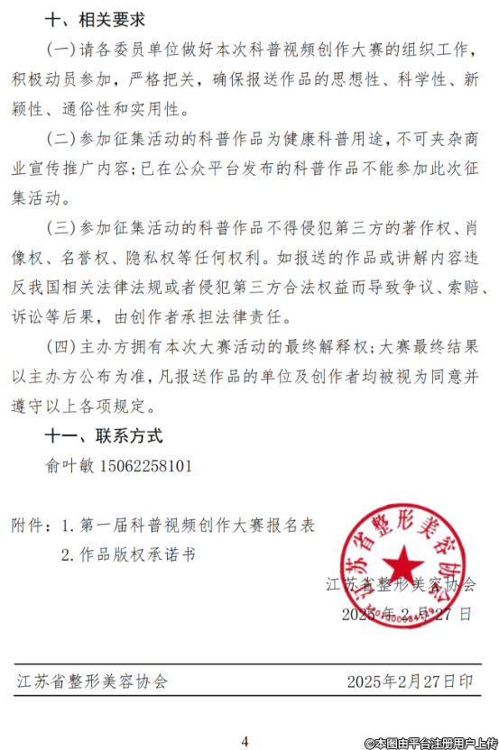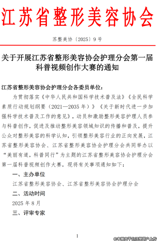 關(guān)于開(kāi)展江蘇省整形美容協(xié)會(huì)護(hù)理分會(huì)第一屆科普視頻創(chuàng)作大賽的通知