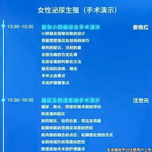 5、微創(chuàng)束帶在漏尿及陰道收緊操作的細(xì)節(jié)、層次、錨定點定位、束帶的固定處理、麻藥的配比、腫漲液的注射。